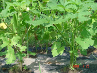 ハイビスカスが咲き、菜園ではオクラ収穫